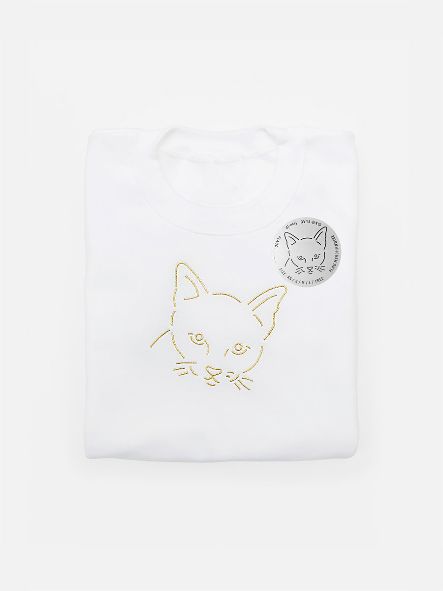 A pure white sweatshirt with a vibrant golden embroidery and a non-stressful fabric that supports a comfortable time with FLAU. 9.7 oz heavy-weight altimate cotton keeps you warm.