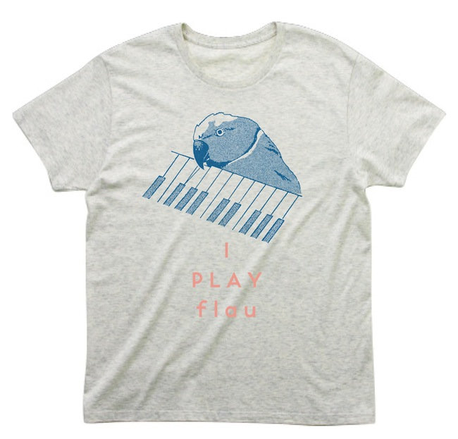 こちらのTシャツは、フラウホンセイインコの生誕5周年を記念し、ことり展を手がける三宅瑠人氏による全面監修の元に製作されました。くちばしを使って器用にピアノを鳴らすその独特な生態を、2次元のイラストレーションへと封じ込めることについに成功。メンズはコーマ糸を使用した100%コットン、レディースはコットン、レーヨン、ポリエステルを混合したトライブレンド素材を使用し、まるでフラウの音楽に触れたときのような柔かく爽やかな肌触りが魅力のTシャツに仕上がりました。レディースのC/D typeはドルマンスリーブのコットン地仕様となっています。